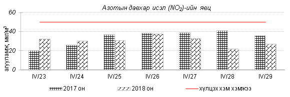 Улаанбаатар хотын агаарт түгээмэл бохирдуулах бодис хүхэрлэг хий /SO2/, азотын давхар исэл /NO2/, тоосонцор /PM10, PM2.5/, нүүрстөрөгчийн дутуу исэл /CO/, озон /O3/-ны агууламжийг тодорхойллоо.