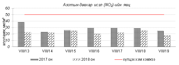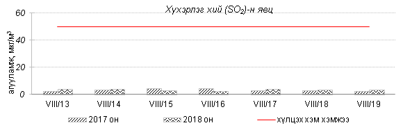 Өнгөрсөн 7 хоногийн агаарын чанарын хяналт шинжилгээний дүнгээр Улаанбаатар хотод агаарын чанар төв автозам дагуух цэгээс бусад цэгүүдэд цэвэр болон хэвийн түвшинд байна. Тээврийн хэрэгслээс голчлон ялгардаг азотын давхар исэл (NO2)-ийн 7 хоногийн дундаж агууламжийг өмнөх оны мөн үетэй харьцуулахад 21%-иар бага байсан бол 24 цагийн дундаж хамгийн их агууламж Агаарын чанарын стандартаас 1.6 дахин их байлаа. Дэлгэрэнгүйг эндээс үзнэ үү.