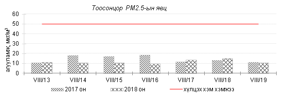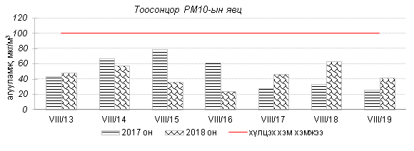 Улаанбаатар хотын агаарт түгээмэл бохирдуулах бодис хүхэрлэг хий /SO2/, азотын давхар исэл /NO2/, тоосонцор /PM10, PM2.5/, нүүрстөрөгчийн дутуу исэл /CO/, озон /O3/-ны агууламжийг тодорхойллоо.
