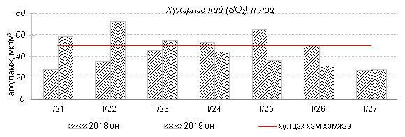 Улаанбаатар хотын агаарт түгээмэл бохирдуулах бодис хүхэрлэг хий /SO2/, азотын давхар исэл /NO2/, тоосонцор /PM10, PM2.5/, нүүрстөрөгчийн дутуу исэл /CO/, озон /O3/-ны агууламжийг тодорхойллоо.