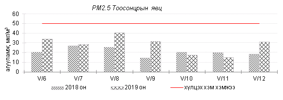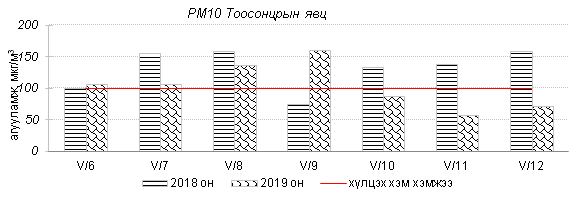 Улаанбаатар хотын агаарт түгээмэл бохирдуулах бодис хүхэрлэг хий /SO2/, азотын давхар исэл /NO2/, тоосонцор /PM10, PM2.5/, нүүрстөрөгчийн дутуу исэл /CO/, озон /O3/-ны агууламжийг тодорхойллоо.