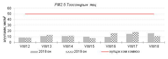 Улаанбаатар хотын агаарт түгээмэл бохирдуулах бодис хүхэрлэг хий /SO2/, азотын давхар исэл /NO2/, тоосонцор /PM10, PM2.5/, нүүрстөрөгчийн дутуу исэл /CO/, озон /O3/-ны агууламжийг тодорхойллоо.