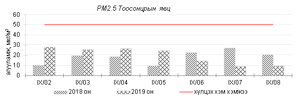 Улаанбаатар хотын агаарт түгээмэл бохирдуулах бодис хүхэрлэг хий /SO2/, азотын давхар исэл /NO2/, тоосонцор /PM10, PM2.5/, нүүрстөрөгчийн дутуу исэл /CO/, озон /O3/-ны агууламжийг тодорхойллоо.