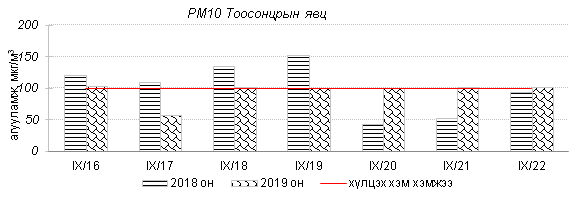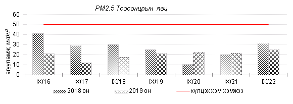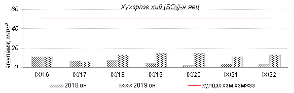 Улаанбаатар хотын агаарт түгээмэл бохирдуулах бодис хүхэрлэг хий /SO2/, азотын давхар исэл /NO2/, тоосонцор /PM10, PM2.5/, нүүрстөрөгчийн дутуу исэл /CO/, озон /O3/-ны агууламжийг тодорхойллоо.