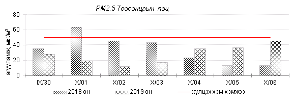 Улаанбаатар хотын агаарт түгээмэл бохирдуулах бодис хүхэрлэг хий /SO2/, азотын давхар исэл /NO2/, тоосонцор /PM10, PM2.5/, нүүрстөрөгчийн дутуу исэл /CO/, озон /O3/-ны агууламжийг тодорхойллоо.