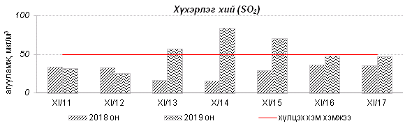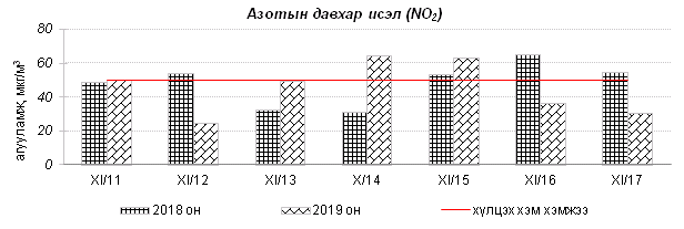 Улаанбаатар хотын агаарт түгээмэл бохирдуулах бодис хүхэрлэг хий /SO2/, азотын давхар исэл /NO2/, тоосонцор /PM10, PM2.5/, нүүрстөрөгчийн дутуу исэл /CO/, озон /O3/-ны агууламжийг тодорхойллоо.