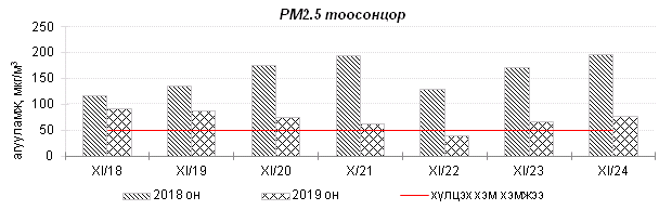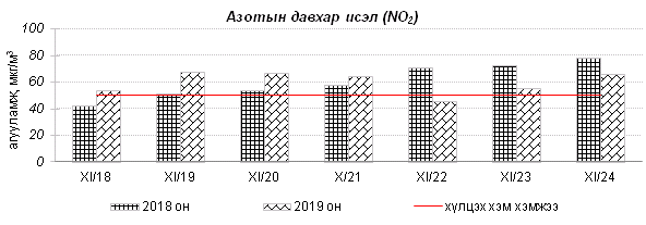 Улаанбаатар хотын агаарт түгээмэл бохирдуулах бодис хүхэрлэг хий /SO2/, азотын давхар исэл /NO2/, тоосонцор /PM10, PM2.5/, нүүрстөрөгчийн дутуу исэл /CO/, озон /O3/-ны агууламжийг тодорхойллоо.