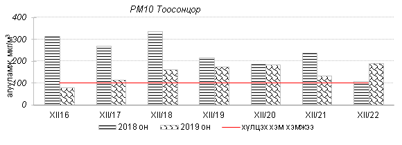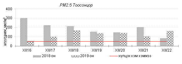 Улаанбаатар хотын агаарт түгээмэл бохирдуулах бодис хүхэрлэг хий /SO2/, азотын давхар исэл /NO2/, тоосонцор /PM10, PM2.5/, нүүрстөрөгчийн дутуу исэл /CO/, озон /O3/-ны агууламжийг тодорхойллоо.