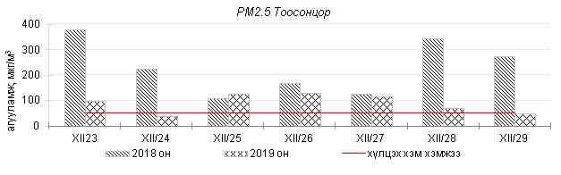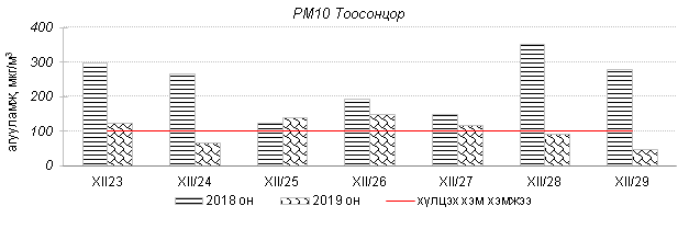 Улаанбаатар хотын агаарт түгээмэл бохирдуулах бодис хүхэрлэг хий /SO2/, азотын давхар исэл /NO2/, тоосонцор /PM10, PM2.5/, нүүрстөрөгчийн дутуу исэл /CO/, озон /O3/-ны агууламжийг тодорхойллоо.