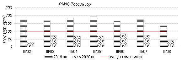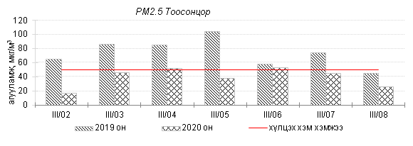 Улаанбаатар хотын агаарт түгээмэл бохирдуулах бодис хүхэрлэг хий /SO2/, азотын давхар исэл /NO2/, тоосонцор /PM10, PM2.5/, нүүрстөрөгчийн дутуу исэл /CO/, озон /O3/-ны агууламжийг тодорхойллоо.
