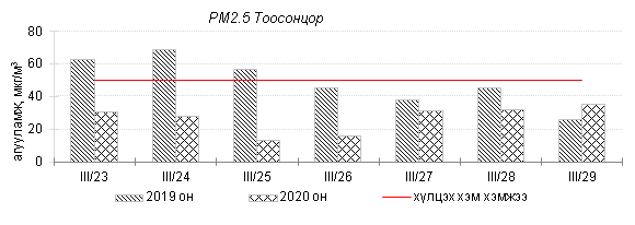Улаанбаатар хотын агаарт түгээмэл бохирдуулах бодис хүхэрлэг хий /SO2/, азотын давхар исэл /NO2/, тоосонцор /PM10, PM2.5/, нүүрстөрөгчийн дутуу исэл /CO/, озон /O3/-ны агууламжийг тодорхойллоо.