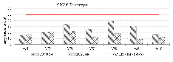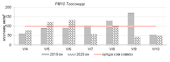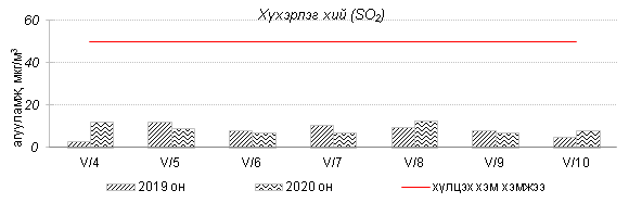 Улаанбаатар хотын агаарт түгээмэл бохирдуулах бодис хүхэрлэг хий /SO2/, азотын давхар исэл /NO2/, тоосонцор /PM10, PM2.5/, нүүрстөрөгчийн дутуу исэл /CO/, озон /O3/-ны агууламжийг тодорхойллоо.