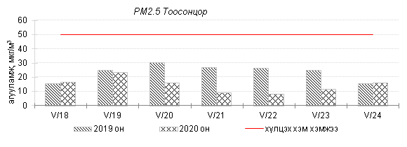 Улаанбаатар хотын агаарт түгээмэл бохирдуулах бодис хүхэрлэг хий /SO2/, азотын давхар исэл /NO2/, тоосонцор /PM10, PM2.5/, нүүрстөрөгчийн дутуу исэл /CO/, озон /O3/-ны агууламжийг тодорхойллоо.