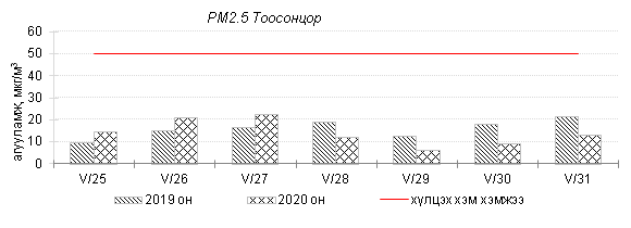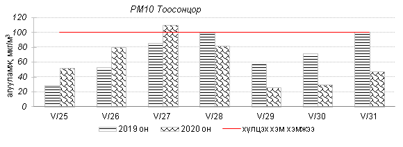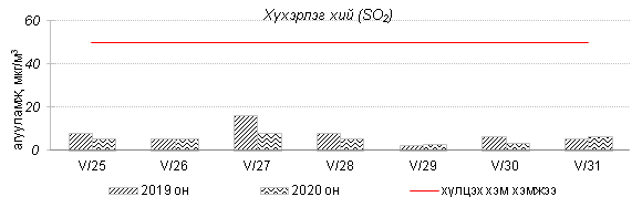 Улаанбаатар хотын агаарт түгээмэл бохирдуулах бодис хүхэрлэг хий /SO2/, азотын давхар исэл /NO2/, тоосонцор /PM10, PM2.5/, нүүрстөрөгчийн дутуу исэл /CO/, озон /O3/-ны агууламжийг тодорхойллоо.