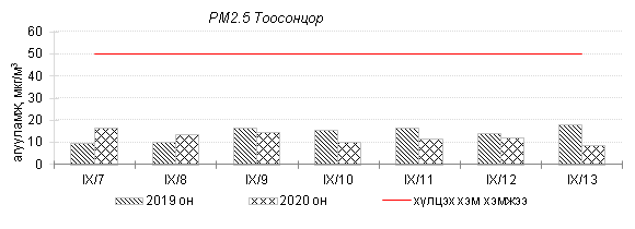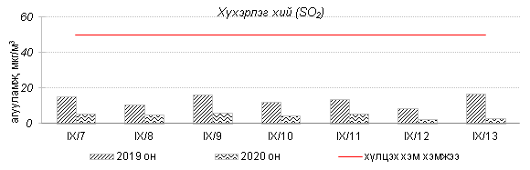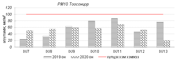 Улаанбаатар хотын агаарт түгээмэл бохирдуулах бодис хүхэрлэг хий /SO2/, азотын давхар исэл /NO2/, тоосонцор /PM10, PM2.5/, нүүрстөрөгчийн дутуу исэл /CO/, озон /O3/-ны агууламжийг тодорхойллоо.