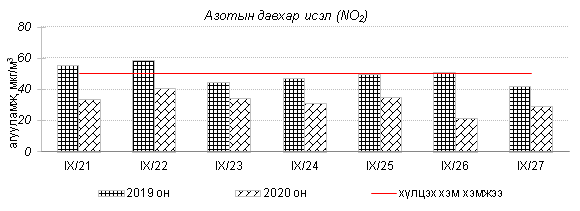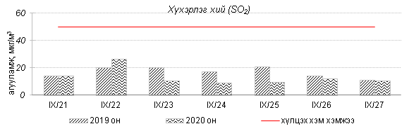 Улаанбаатар хотын агаарт түгээмэл бохирдуулах бодис хүхэрлэг хий /SO2/, азотын давхар исэл /NO2/, тоосонцор /PM10, PM2.5/, нүүрстөрөгчийн дутуу исэл /CO/, озон /O3/-ны агууламжийг тодорхойллоо.