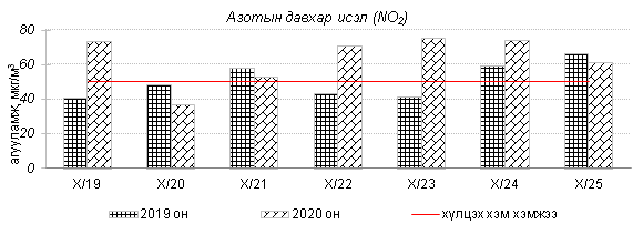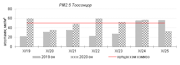 Улаанбаатар хотын агаарт түгээмэл бохирдуулах бодис хүхэрлэг хий /SO2/, азотын давхар исэл /NO2/, тоосонцор /PM10, PM2.5/, нүүрстөрөгчийн дутуу исэл /CO/, озон /O3/-ны агууламжийг тодорхойллоо.