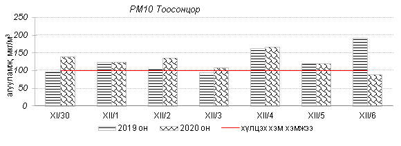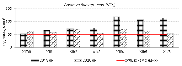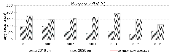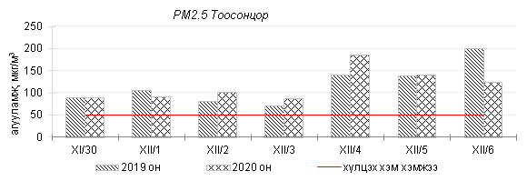 Улаанбаатар хотын агаарт түгээмэл бохирдуулах бодис хүхэрлэг хий /SO2/, азотын давхар исэл /NO2/, тоосонцор /PM10, PM2.5/, нүүрстөрөгчийн дутуу исэл /CO/, озон /O3/-ны агууламжийг тодорхойллоо.