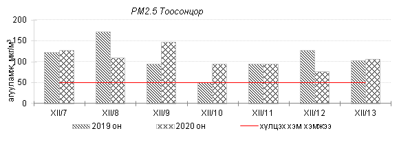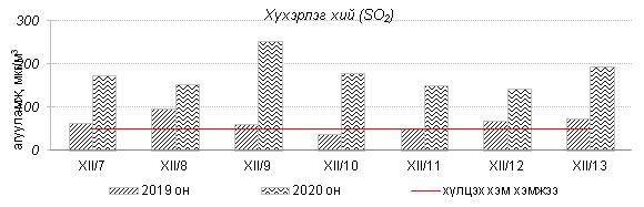 Улаанбаатар хотын агаарт түгээмэл бохирдуулах бодис хүхэрлэг хий /SO2/, азотын давхар исэл /NO2/, тоосонцор /PM10, PM2.5/, нүүрстөрөгчийн дутуу исэл /CO/, озон /O3/-ны агууламжийг тодорхойллоо.