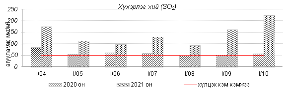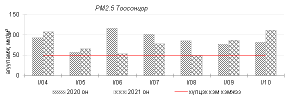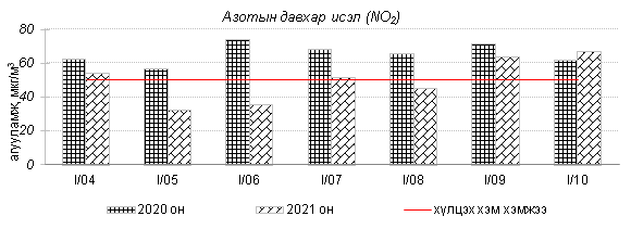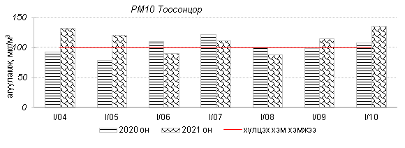 Улаанбаатар хотын агаарт түгээмэл бохирдуулах бодис хүхэрлэг хий /SO2/, азотын давхар исэл /NO2/, тоосонцор /PM10, PM2.5/, нүүрстөрөгчийн дутуу исэл /CO/, озон /O3/-ы агууламжийг тодорхойллоо.